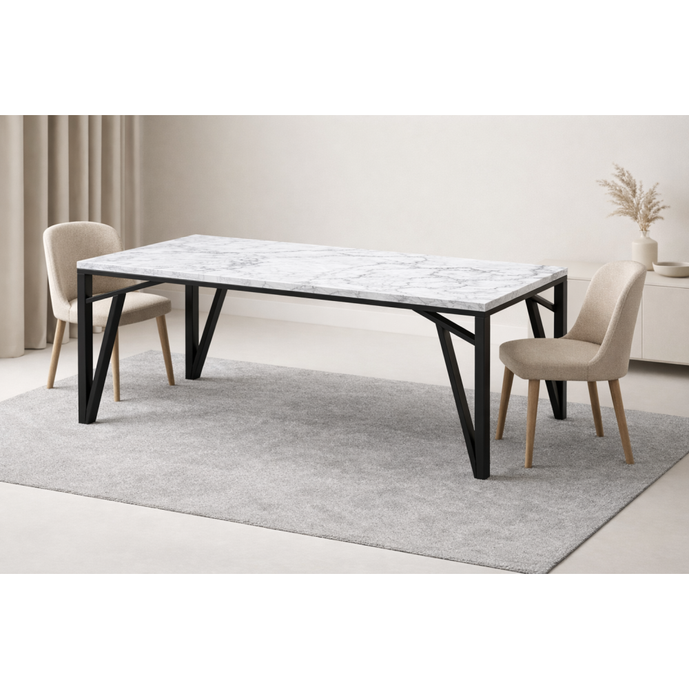 Металната основа за маса модел „Торино“ съчетава съвременен дизайн, стабилност и издръжливост. Изработена от висококачествена стомана, тя осигурява надеждна опора за различни видове плотове – дърво, стъкло или камък. Геометричната ѝ форма придава елегантен и модерен вид, подходящ както за домашни интериори, така и за търговски пространства като ресторанти и офиси. Праховото покритие гарантира устойчивост на износване и корозия, както и лесна поддръжка. Модел „Торино“ е идеален избор за всеки, който търси баланс между функционалност, стил и дълготрайност, съчетавайки практичност с впечатляваща визия.